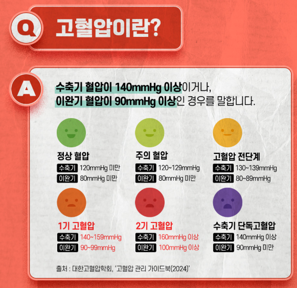의학적으로 권장되는 적정혈압은 120/80mmHg 이하이며,